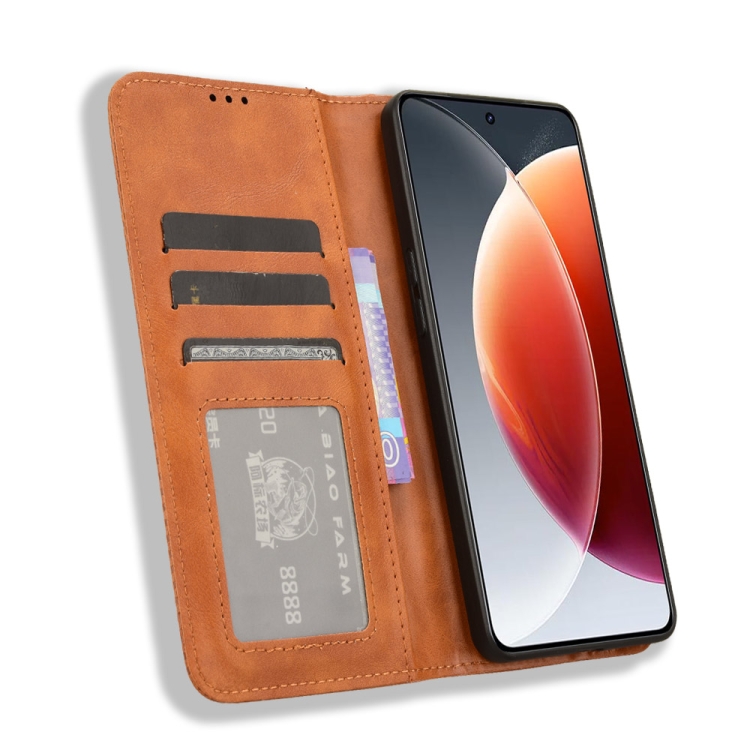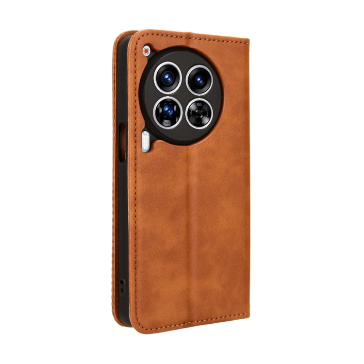 Funda para Tecno Camon 30 Premier 5G Cuero Textura Retro Hebilla Magnética (Marrón)