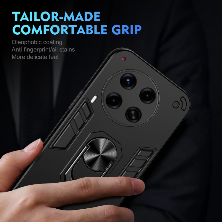 Funda para Tecno Camon 30 Premier con Soporte de Anillo de Metal a Prueba de Golpes (Negro)