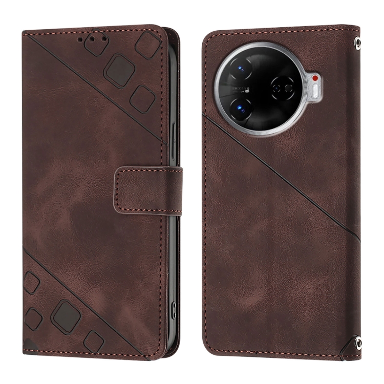 Funda de Cuero para Tecno Camon 30 Pro 5G Skin Feel en Relieve (Marrón)