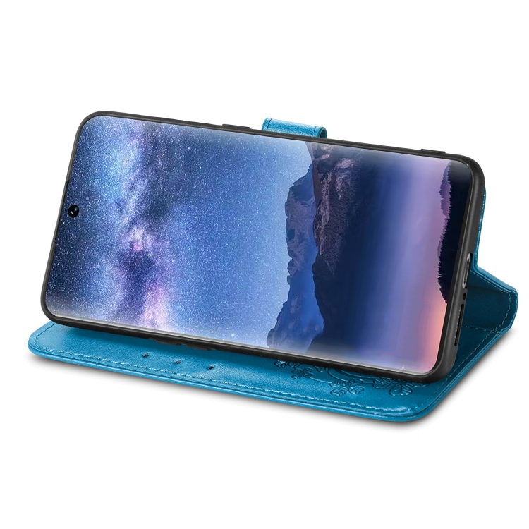 Funda para Teléfono + Tecno Itel S23 + Cuero + Hebilla en Relieve + Cierre de Cuatro Hojas (Azul)