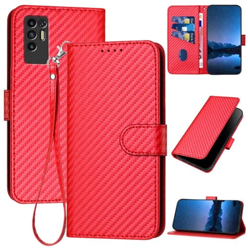 Funda de Cuero para Tecno Pova 2 Yx0070 con Hebilla de Fibra de Carbono y Cordón (Rojo)