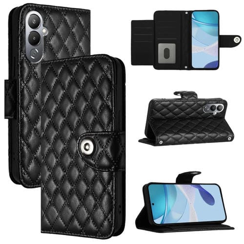 Funda de Cuero para Tecno Pova 4 con Tapa Textura Rombal y Cordón (Negro)