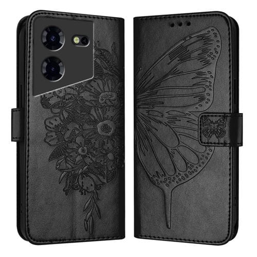 Funda de Cuero para Tecno Pova 5 Pro 5G con Mariposa en Relieve (Negro)