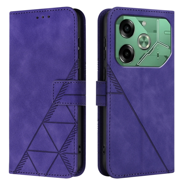 Funda de Cuero para Tecno Pova 6 4G Crossbody con Tapa en Relieve 3D (Púrpura)