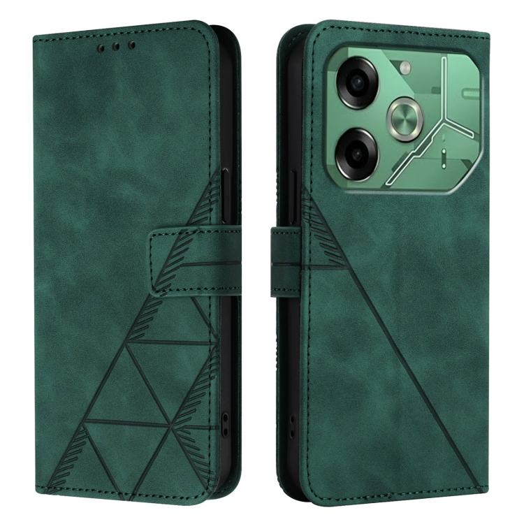 Funda de Cuero para Tecno Pova 6 4G Crossbody con Tapa en Relieve 3D (Verde Oscuro)