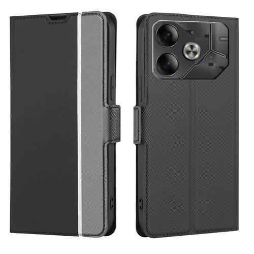Funda de Cuero para Tecno Pova 6 5G con Botón Lateral y Textura de Sarga (Negro)