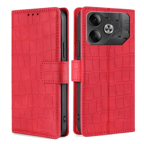 Funda de Cuero para Tecno Pova 6 5G Skin Feel Crocodile con Cierre Magnético (Rojo)