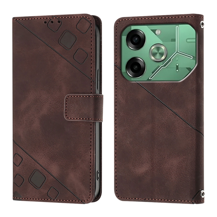 Funda de Cuero para Tecno Pova 6 Skin Feel en Relieve (Marrón)