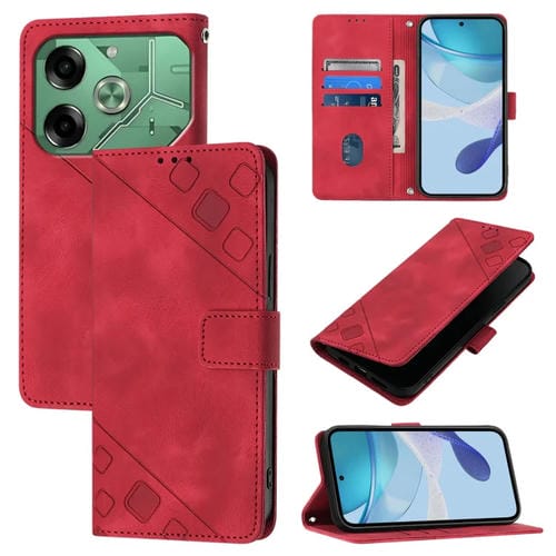 Funda de Cuero para Tecno Pova 6 Skin Feel en Relieve (Rojo)