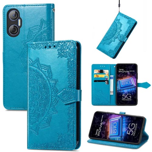 Funda de Cuero para Tecno Pova Neo 5G Mandala Flower en Relieve (Azul)