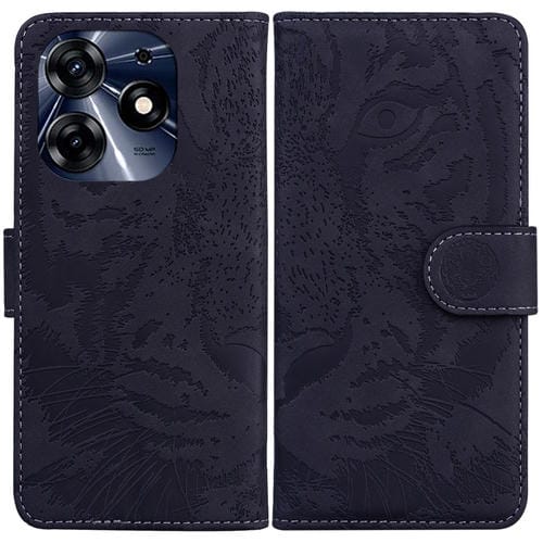 Funda de Cuero para Tecno Spark 10 Pro con Patrón Tiger Embossing Flip (Negro)