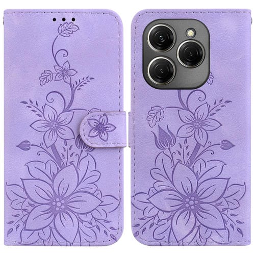 Funda para Tecno Spark 20 Lily Cuero En Relieve para Teléfono (Púrpura)