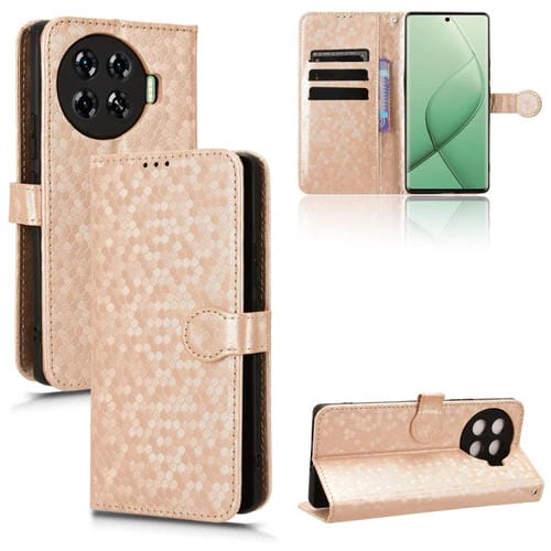 Funda de Cuero para Tecno Spark 20 Pro 4G con Textura de Punto de Panal (Dorado)