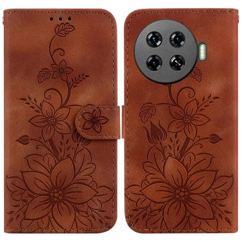 Funda de Cuero para Tecno Spark 20 Pro+ 4G Lily en Relieve (Marrón)