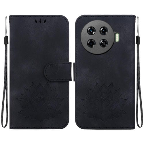 Funda de Cuero para Tecno Spark 20 Pro+ con Relieve de Loto (Negro)