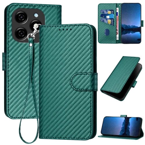 Funda de Cuero para Tecno Spark 20 Yx0070 con Hebilla de Fibra de Carbono y Cordón (Verde Oscuro)