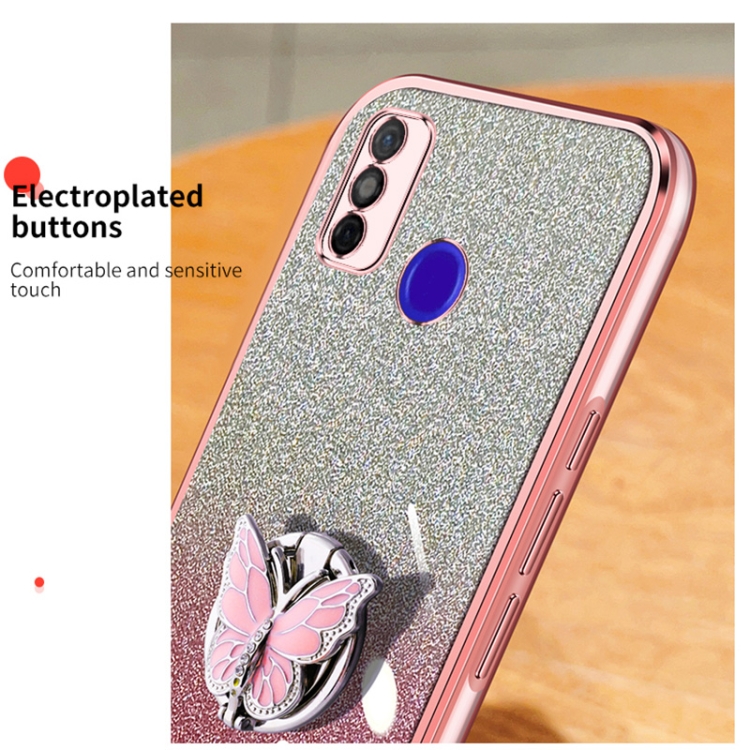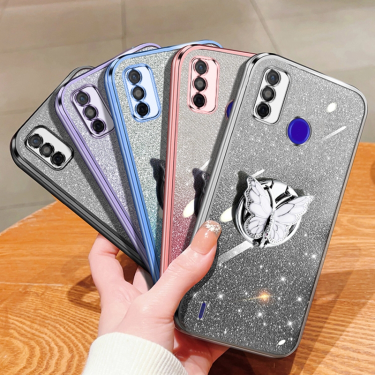 Funda TPU para Tecno Spark Go 2020 con Soporte Mariposa y Brillo Degradado (Negro)
