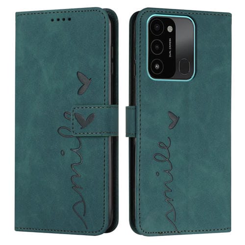 Funda para Tecno Spark Go 2022 con Patrón Feel Heart de Cuero (Verde)