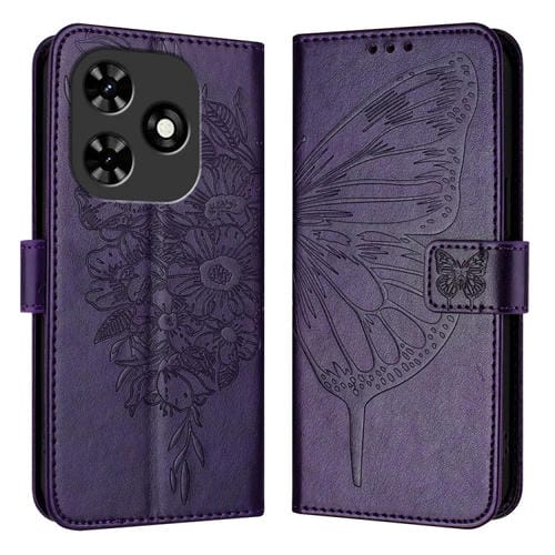 Funda para Tecno Spark Go 2024 y Spark 20C Cuero Mariposa En Relieve (Púrpura Oscuro)