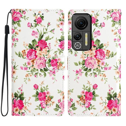 Funda de Cuero Ulefone Note 14 con Dibujo Coloreado Peonías
