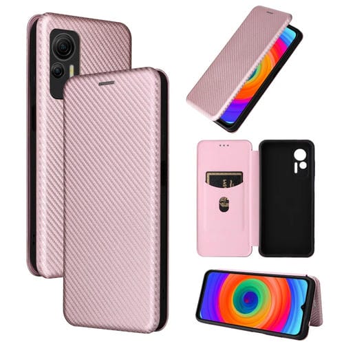 Funda de Cuero para Ulefone Note 14 con Textura de Fibra de Carbono (Rosa)