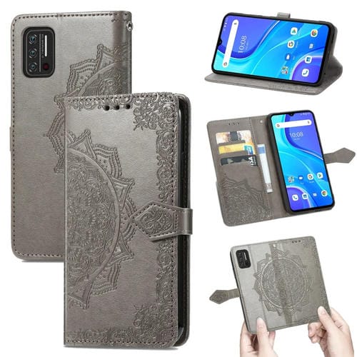 Funda de Cuero Horizontal para Umidigi A7S Mandala Flower con Soporte, Tarjetero y Billetera (Gris)