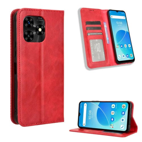 Funda de Cuero con Hebilla Magnética para Umidigi G5 con Textura Retro (Rojo)
