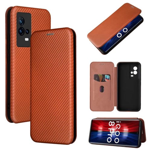 Para Vivo Iqoo 8 Pro Carbon Fibra Textura Magnética Horizontal Flip TPU + PC + Funda de Cuero Pu con Ranura para Tarjeta (Marrón)