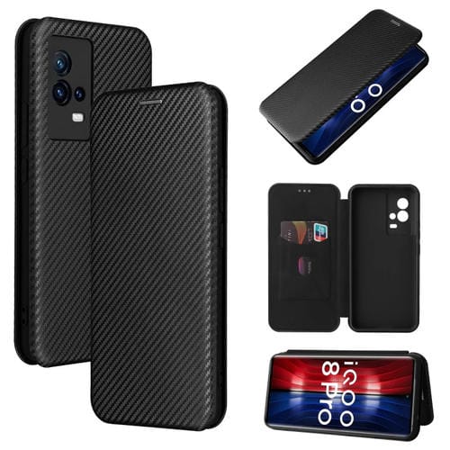 Para Vivo Iqoo 8 Pro Carbon Fibre Texture Horizontal Flip TPU + PC + Funda de Cuero Pu con Ranura para Tarjeta (Negro)