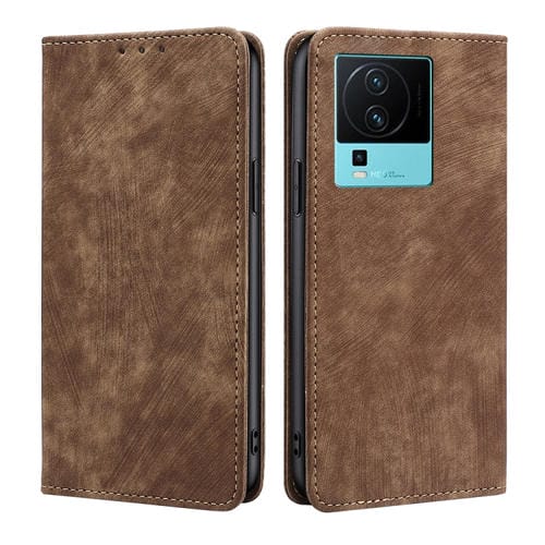 Para Vivo Iqoo Neo7 Rfid Funda de Teléfono de Cuero Magnético con Cepillo Antirrobo (Marrón)