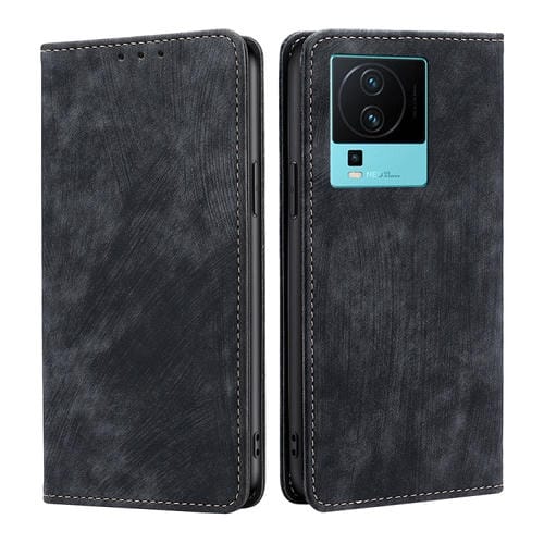 Para Vivo Iqoo Neo7 Rfid Funda de Teléfono de Cuero Magnético con Cepillo Antirrobo (Negro)