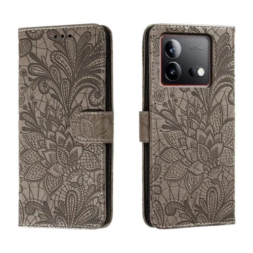 Para Vivo Iqoo Neo8 Funda para Teléfono de Cuero con Tapa y Estampado de Flores de Encaje (Gris)
