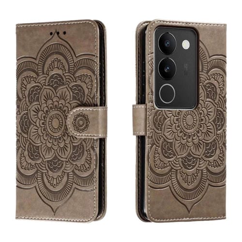 Para Vivo S17 Sun Mandala Funda de Cuero para Teléfono con Patrón En Relieve (Gris)