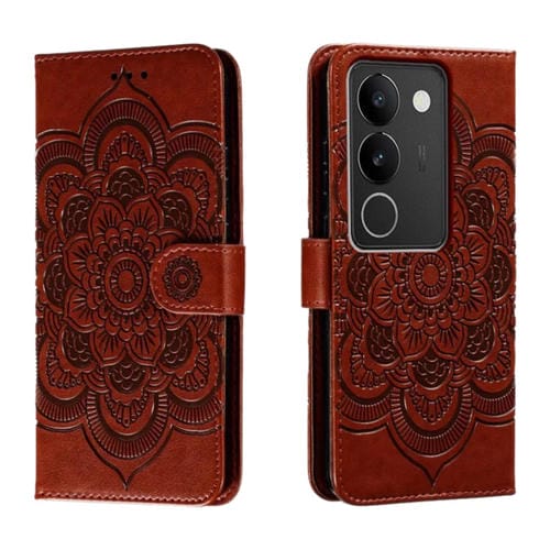 Para Vivo S17 Sun Mandala Funda de Cuero para Teléfono con Patrón En Relieve (Marrón)