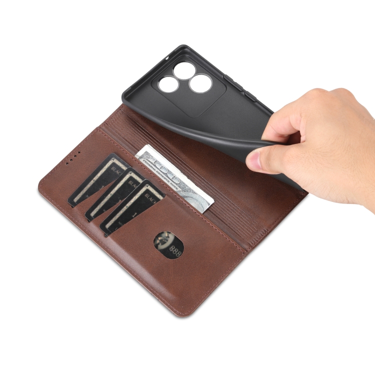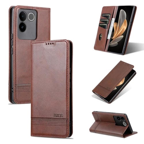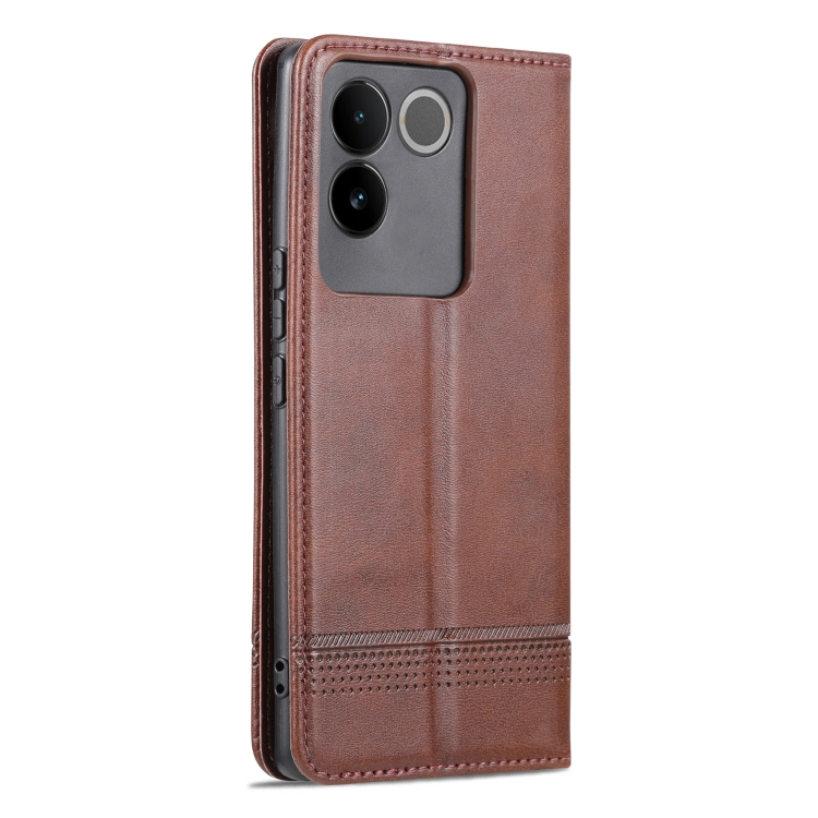 Para Vivo S17E Azns Funda de Teléfono de Cuero con Textura de Becerro Magnético (Marrón Oscuro)