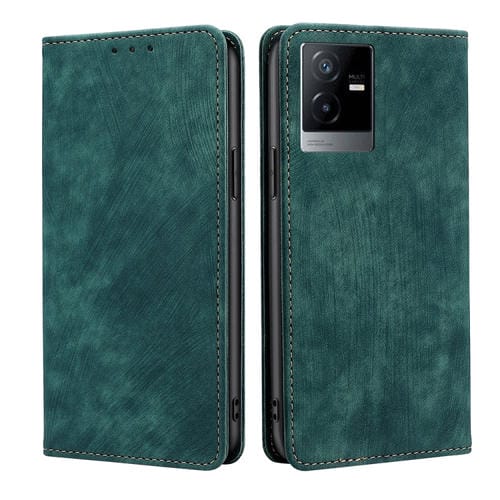 Para Vivo T2X 5G/Y73T/Iqoo Z6X Rfid Antirrobo Cepillo Funda Magnética de Cuero para Teléfono (Verde)