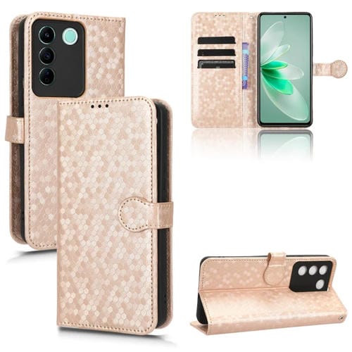 Para Vivo V27E / S16E Funda de Cuero con Textura de Panal de Abeja (Oro)