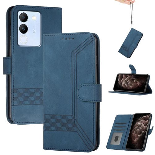 Para Vivo V29E 5G Global / Y200 5G Global Cubic Skin Feel Funda de Cuero con Tapa para Teléfono (Azul)