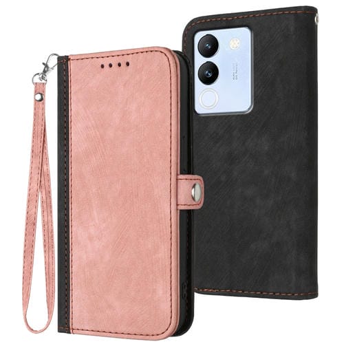 Para Vivo V30 Lite 5G Funda de Cuero para Teléfono con Hebilla Lateral Global y Correa de Mano con Doble Pliegue (Rosa)