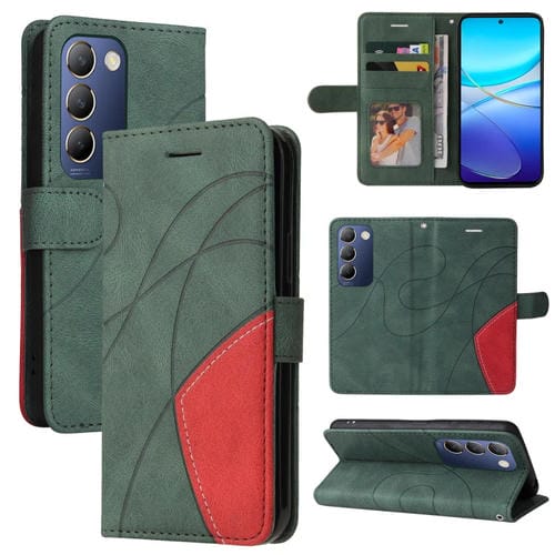 Para Vivo V40 Se 5G / Y100 Idn Funda de Cuero con Tapa y Empalme de Dos Colores (Verde)