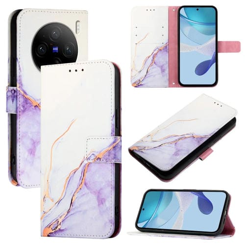 Para Vivo X100S Pt003 Funda para Teléfono de Cuero con Tapa con Patrón de Mármol (Blanco y Morado)