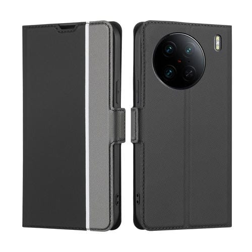 Para Vivo X90 Pro 5G Sarga Textura Botón Lateral Funda de Cuero para Teléfono (Negro)