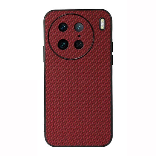 Para Vivo X90 Pro Funda de Teléfono de Pu con Textura de Fibra de Carbono con Orificio Preciso (Rojo)