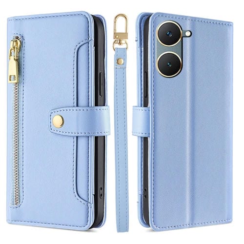 Para Vivo Y03 4G Estuche de Cuero para Teléfono con Billetera con Cremallera y Cuerpo Cruzado con Textura de Oveja (Azul)