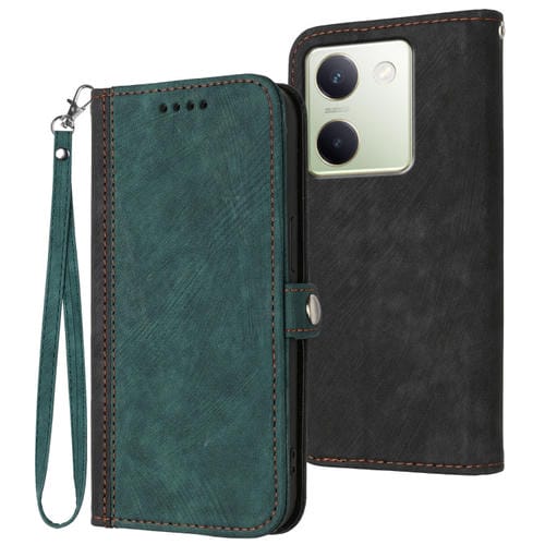 Para Vivo Y100 5G Global Hebilla Lateral Doble Pliegue Correa de Mano Funda de Cuero para Teléfono (Verde Oscuro)