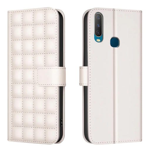 Para Vivo Y11 / Y15 / Y12 / Y17 Funda para Teléfono de Cuero con Textura Cuadrada (Beige)