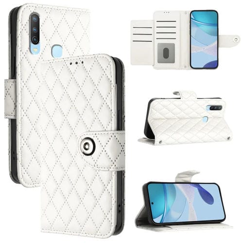 Para Vivo Y17 / Y15 / Y12 / Y11 2019 Funda para Teléfono de Cuero con Tapa con Textura Rómbica y Cordón (Blanco)