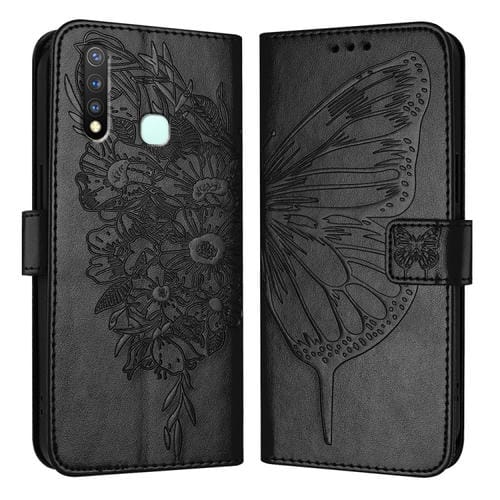 Para Vivo Y19/Y5S/U3/U20/Z5I Funda para Teléfono de Cuero con Mariposa En Relieve (Negro)