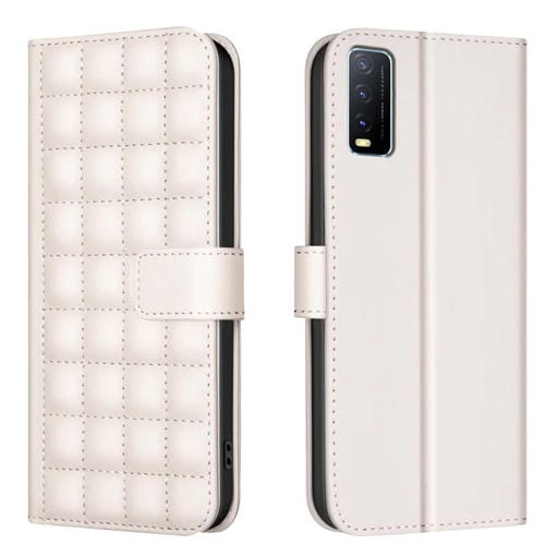 Para Vivo Y20 Funda de Cuero con Textura Cuadrada (Beige)