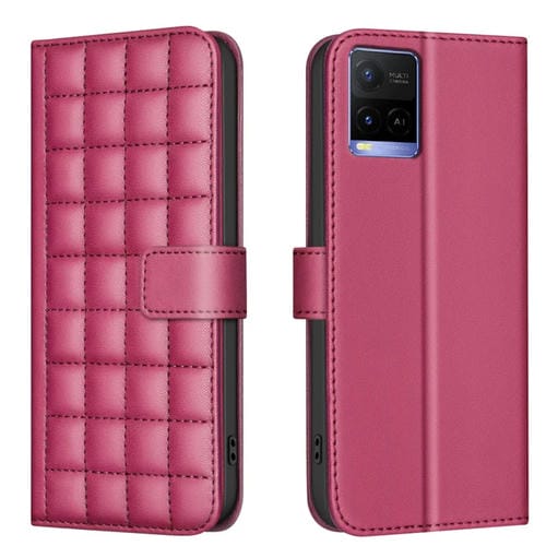 Para Vivo Y21 / Y21S / Y33S Funda para Teléfono de Cuero con Textura Cuadrada (Rojo)